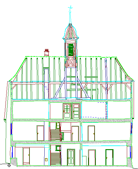 Altes Rathaus, Längsschnitt.