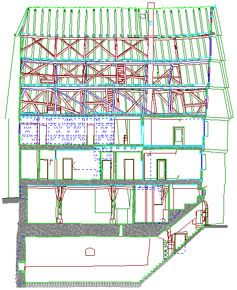 Langgasse 5 (Riesenhaus), Längsschnitt.